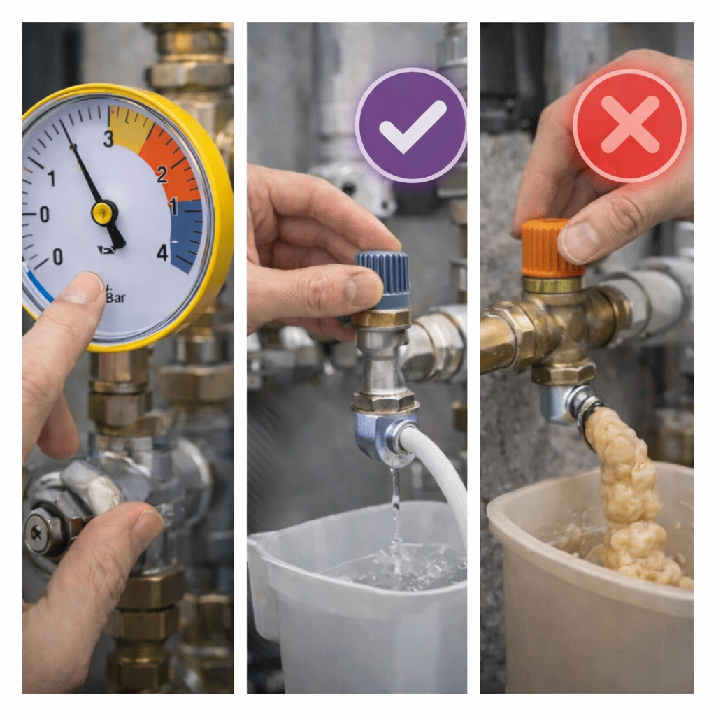Важно: Перепад между холодным и горячим состоянием не должен быть слишком резким. Если при нагреве манометр резко улетает к 2,5 бар, значит, у вас проблемы с расширительным баком или недостаточно воздуха в нем.