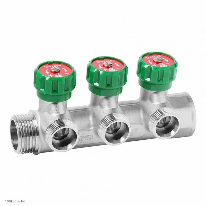 Магазин 100котлов предлагает купить Коллектор VIEIR VR526-3 ("евроконус" с вентилями 1"x3/4"-3 вых) за наличный, безналичный расчет и в рассрочку. А также доставить и установить. Цена зависит от схемы обвязки. Весь спектр работ "под ключ".
