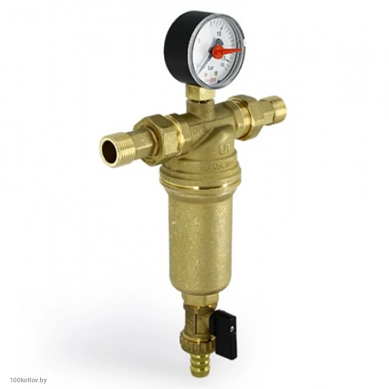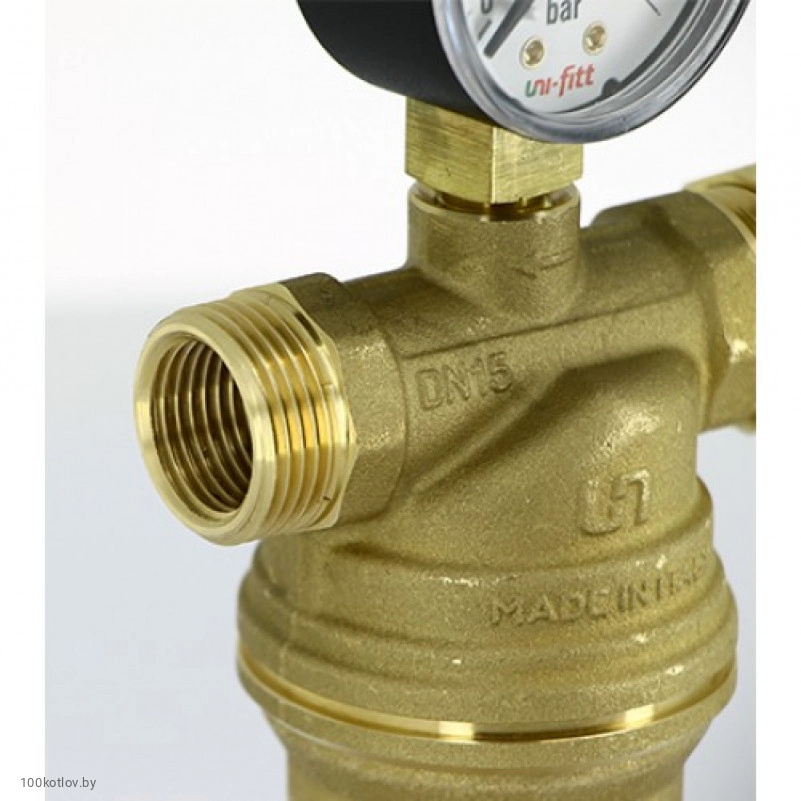 Фильтр промывной Uni-fitt 214A2300 (ВН с редукционными соединениями со сливным шаровым краном и манометром Размер:1/2')