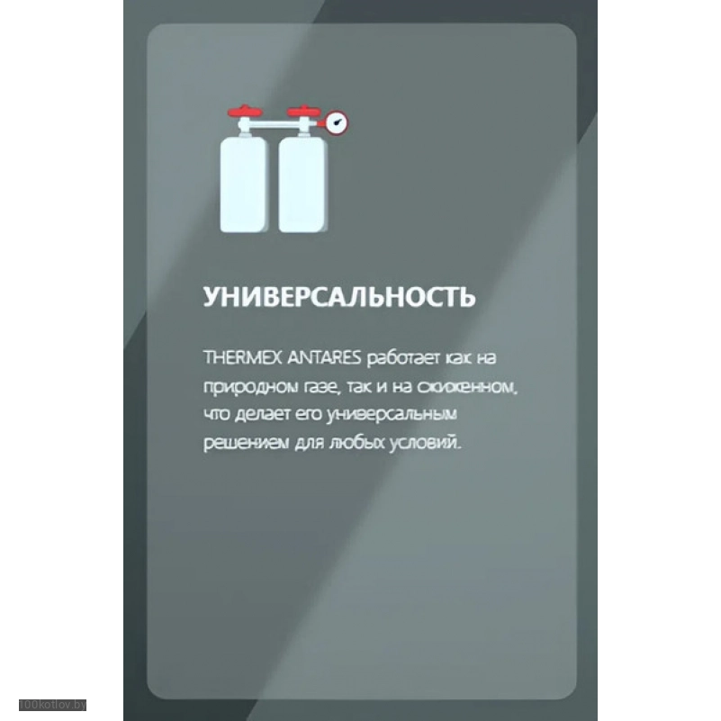 Магазин 100котлов предлагает купить Газовый котел Thermex Antares F24 за наличный, безналичный расчет и в рассрочку. А также доставить и установить. Цена зависит от схемы обвязки. Весь спектр работ "под ключ".