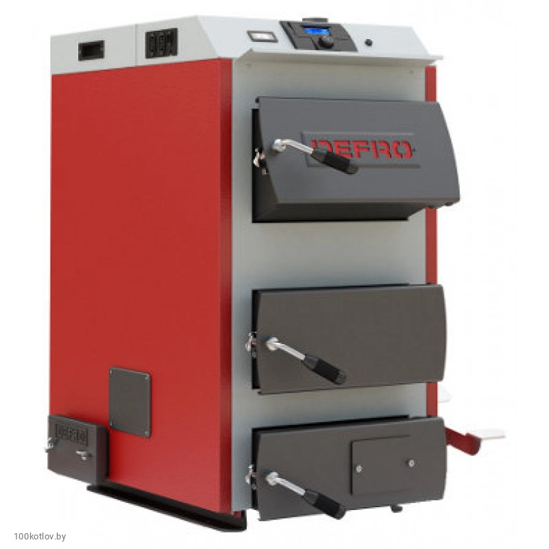 Твердотопливный котел Defro (Дэфро) - стальной твердотопливный котел производства Польша. В данном случае у нас котел Defro серии OPTIMA, OPTIMA KOMFORT или OPTIMA KOMFORT PLUS. Котлы данной серии поставляются в Беларусь двух исполнений. Defro OPTIMA и OPTIMA KOMFORT - стальной твердотопивный котел, где управление температурой выполняет тягорегулятор (цепочка). В котлах Defro OPTIMA KOMFORT Plus управлением температурой занимается автоматика (электронный контроллер + вентилятор). Котлы Defro устанавливают в загородные дома, дачи, коттеджи, административные и промышленные дома для отопления радиаторов, теплого пола, подключение водонагревателя. Киловатный ряд у котлов серии OPTIMA от 8 кВт (70 м2) до 35 кВт (330 м2), что позволит поставить данный котел в любой частный дом. Сталь в котлах Defro специальная котловая толщиной 5 мм. Колосники водяные. Первичное топливо котлов твердотопливных Defro - каменный уголь, вторичное - торфобрикет, дрова. Купить стальной котел Defro по низким ценам со склада в Минске с доставкой по всей территории Республики Беларусь в компании 100kotlov.by
