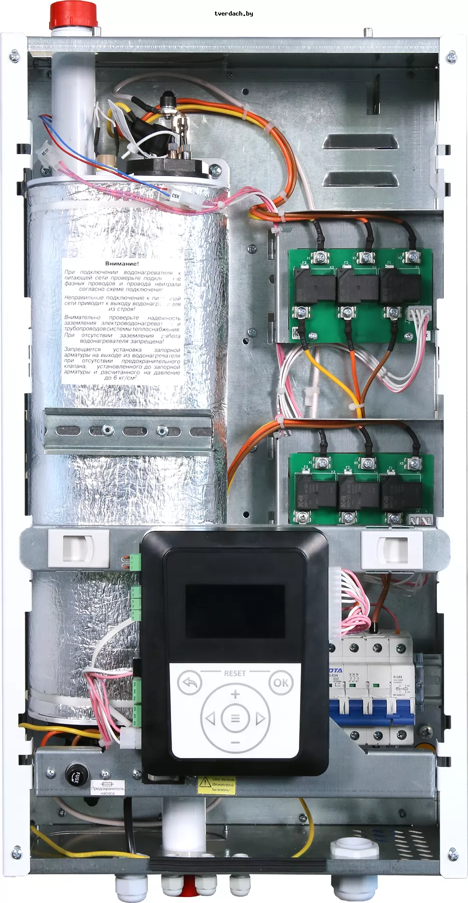 Оснащен системой диагностики неисправностей с выводом кодов ошибок на экран. Есть возможность подключения внешнего ИБП, насоса и клапана.