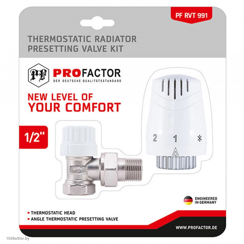 Комплект термостатический для радиатора угловой (с преднастройкой) 1/2"