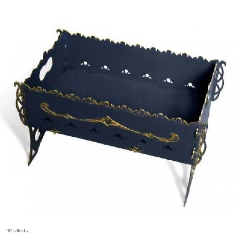 Изготовлен методом современной станочной резки. Мангал для дачи оправдывает вложенные средства долгим сроком эксплуатации за счет толщины металла 3 мм. Для розжига топки мангала можно использовать — древесный уголь, осину, березу, дуб. Удобен для транспортировки в разобранном виде. Мангал обработан высокотемпературной краской и украшен кузнечной золотой патиной. Стандартный цвет мангала — черный.