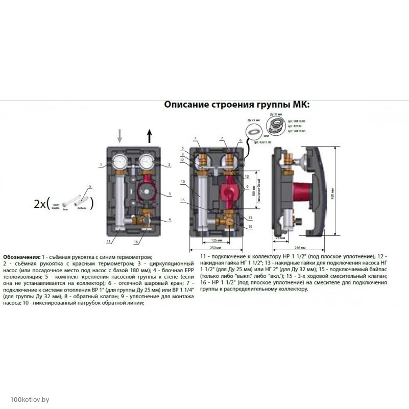 Насосная группа Meibes Kombimix UK/MTVE (с термостатом EUROSTER 11M) с насосом Grundfos UPSO 15-65 (МЕ26102.2 GF)