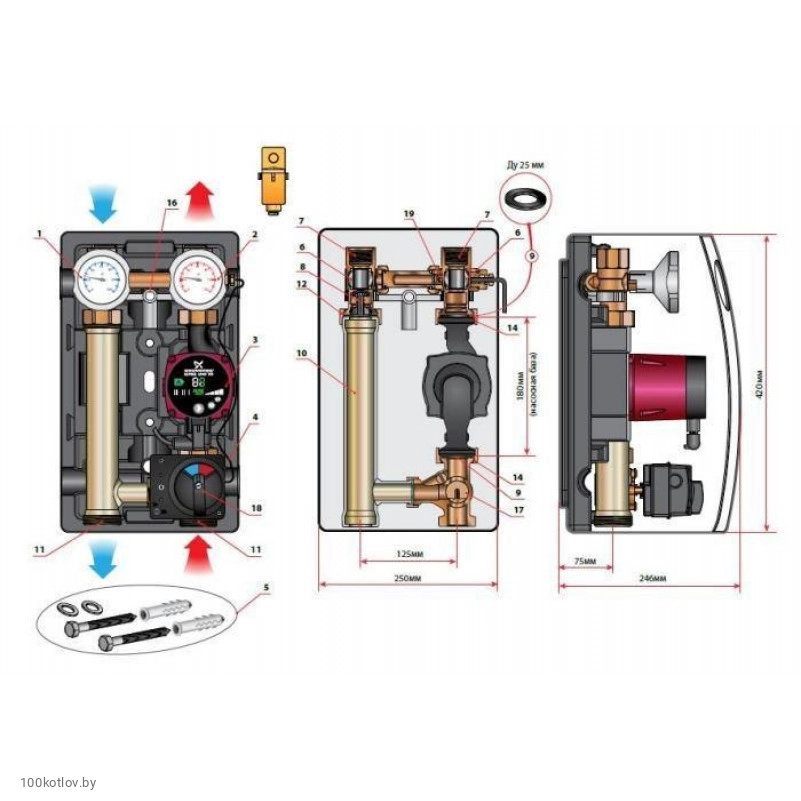 Насосная группа Meibes МК термостат для теплого пола без насоса 1" (МЕ 45890.5 ЕА)