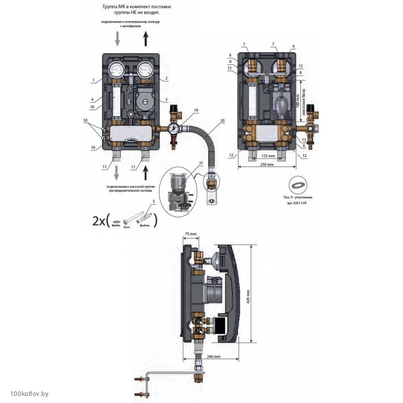 Насосная группа Meibes МKE 8 поколение (с термостатическим контроллером E11M) с насосом WITA HE OEM2 40/60-25-180, 1" (МЕ 66831.1 WIT)