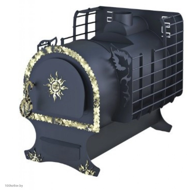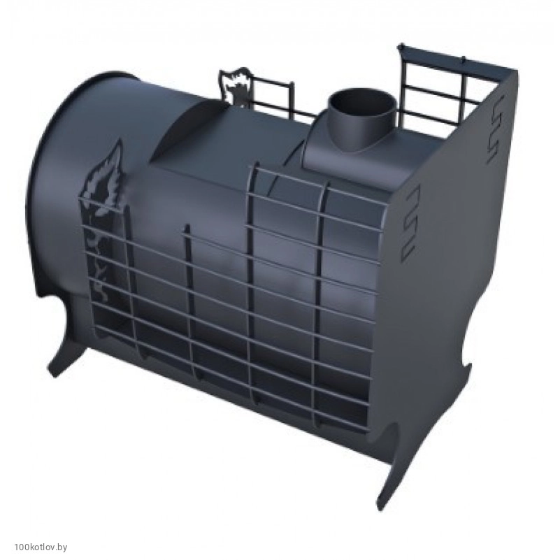 Довольно большая масса камней в печи сверху и по периметру топки (до 120 кг килограмм) прекрасно держит тепло в бане, экономя при этом топливный материал.