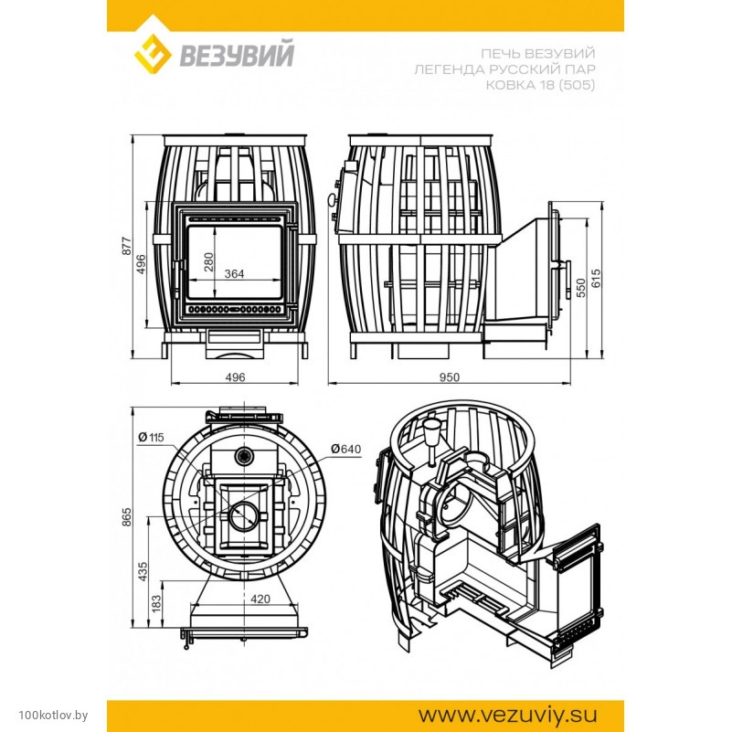 Печь для бани Везувий Легенда Русский Пар Ковка 18 (505)