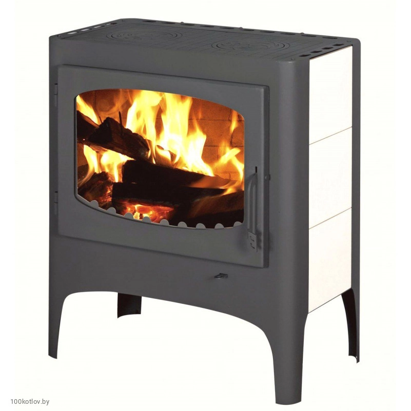 Корпус выполнен из стали и отделан керамической плиткой. Топочная камера футерована шамотом, который защищает металлический корпус, продлевает срок службы и повышает теплоемкость печи. В последствии ремонт, как правило, заключается только в замене кирпичей на новые.