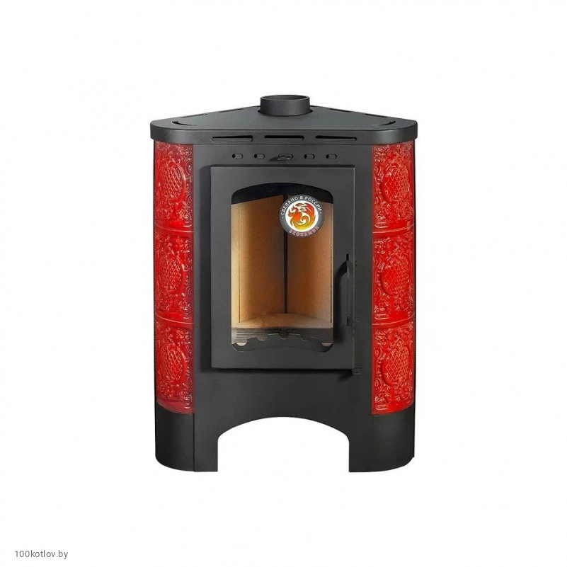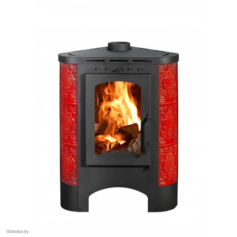 Печь-камин ЭкоКамин Бавария Угловая Радиус изразцовая Барокко кирпичный с металлической крышкой