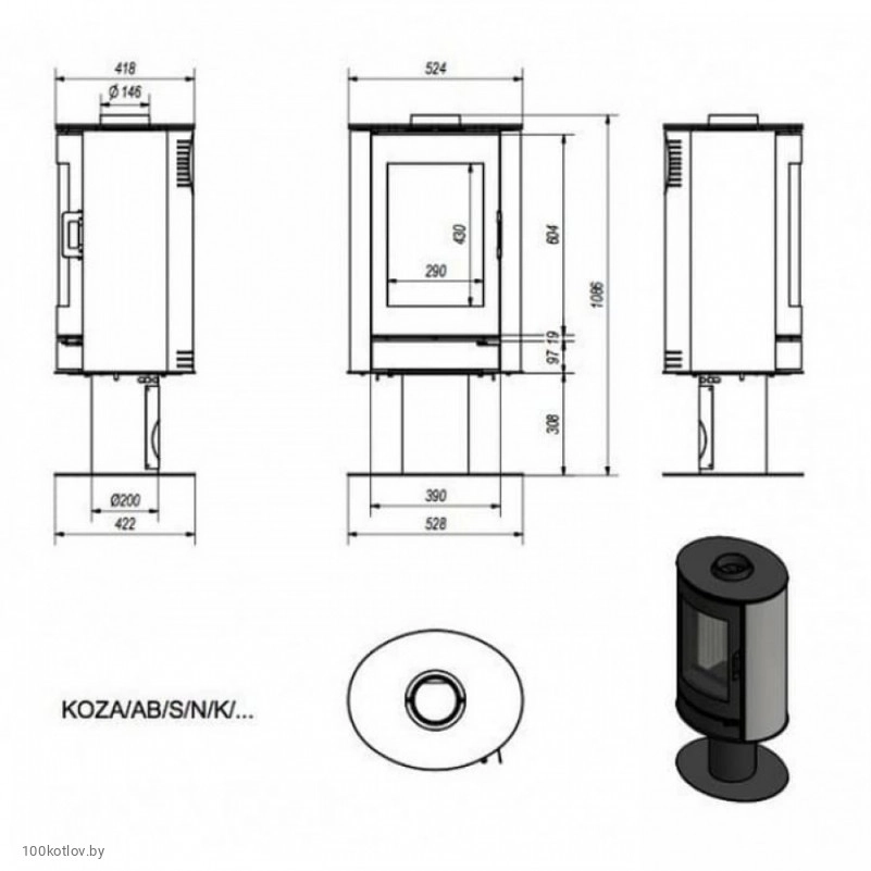 Печь-камин Kratki Koza/AB/S/N/KAFEL/BIALY (кафель белый)