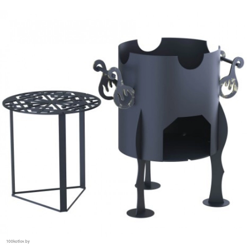 Печь под казан Царь-Печи (8мм) 8 литров выполнена из стали толщиной 8 мм. Достаточно толстый металл самих ножек (разборные) позволяет выдерживать серьезную массу казана 8 литров. Вставка для приготовления еды и подставка под горячий казан в комплекте.