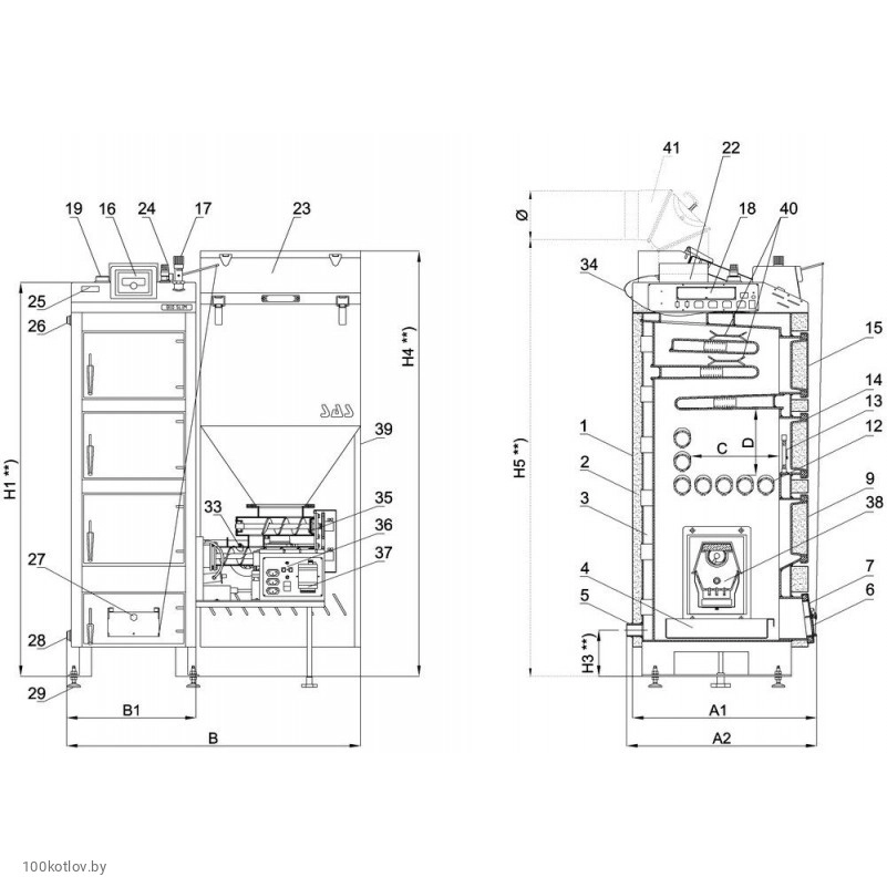 Пеллетный котел Biawar Pellux 100 K-PAA 30