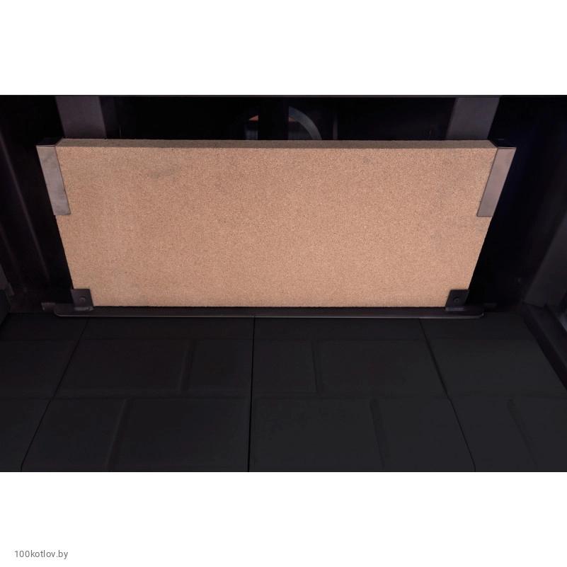 • Топочная камера футерована современным материалом, литьевым шамотом бежевого или черного цвета (по желанию покупателя) и надежно защищает металлические детали корпуса топки от перегрева.