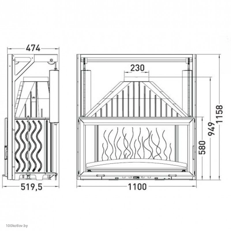 Топка каминная Invicta Grande Vision 1100 с подъемом