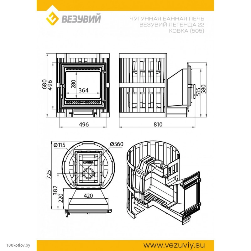 Печь для бани Везувий Легенда Ковка 22 (505)